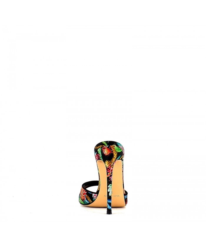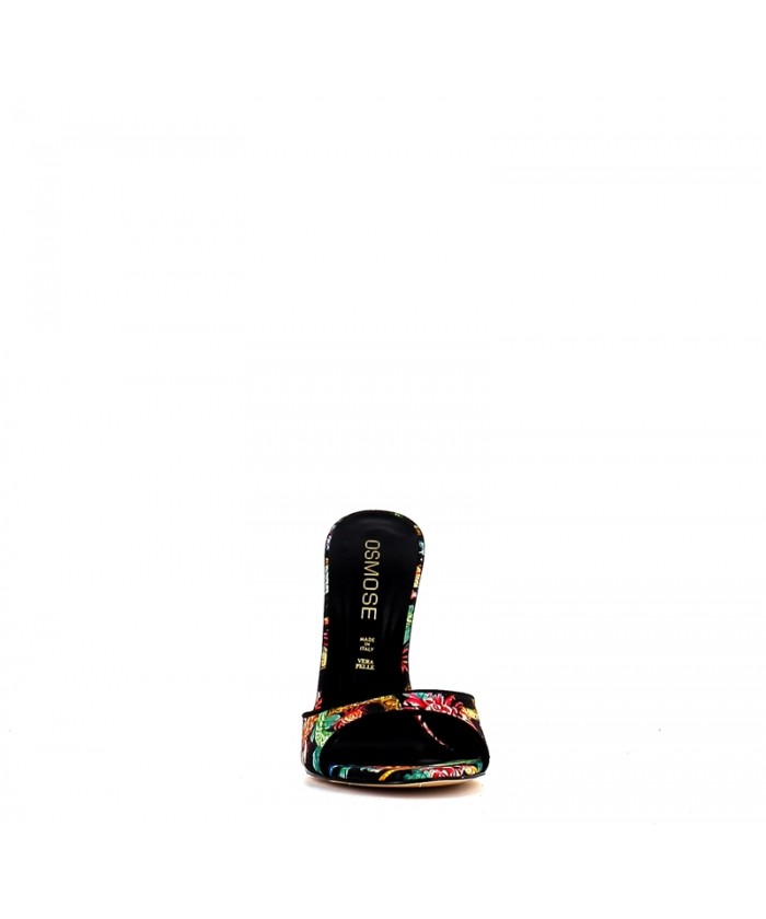 Confectionnée en Italie et signée OSMOSE PARIS, la sandale CARLA en satin noir imprimé multicolore affirme un style audacieux et sophistiqué. Son contraste entre fond noir profond et motifs colorés apporte une touche chic et originale, parfaite pour sublimer vos looks.