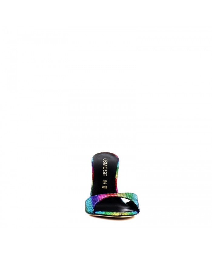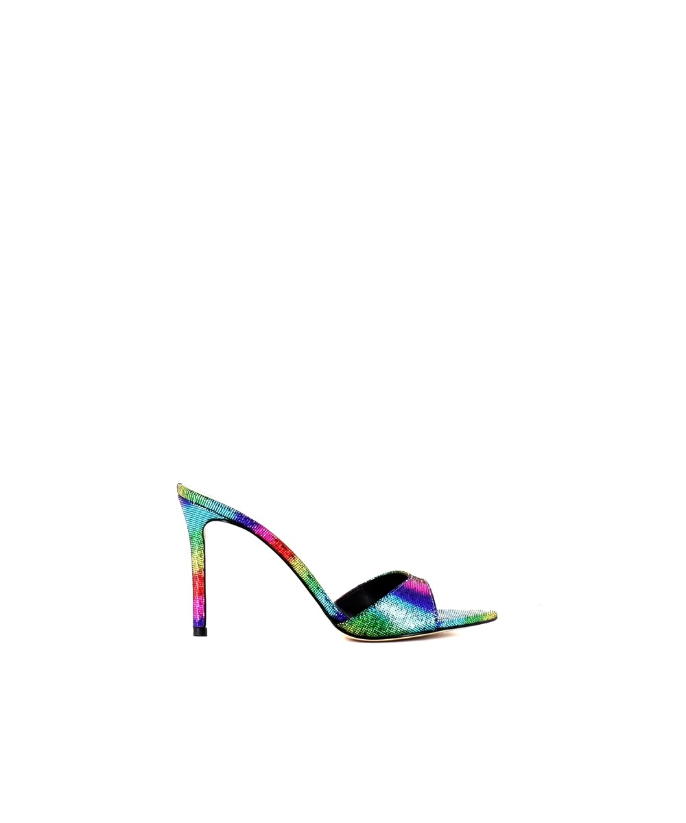 Confectionnée en Italie et signée OSMOSE PARIS, la sandale BEATRICE en satin multicolore effet arc-en-ciel se distingue par son allure vibrante et résolument moderne. Réalisée en satin, elle capte la lumière sous différents angles, révélant un jeu de couleurs éclatant allant du vert au bleu, en passant par le rose, le violet et le rouge.