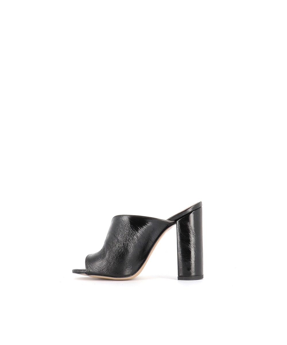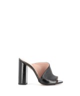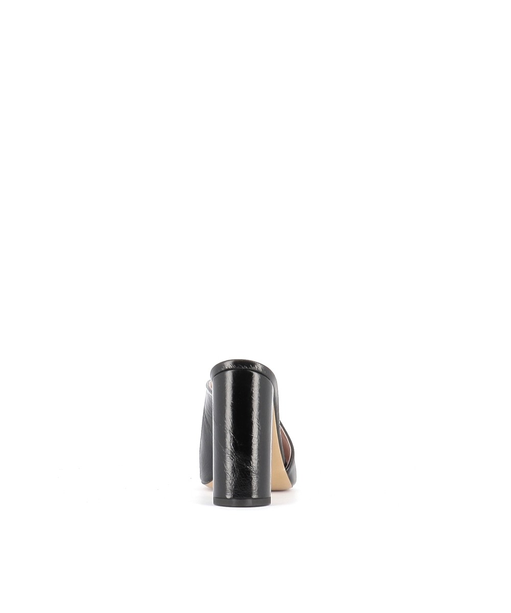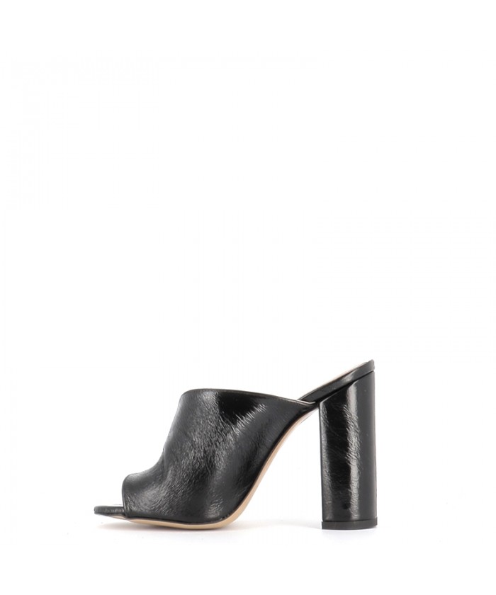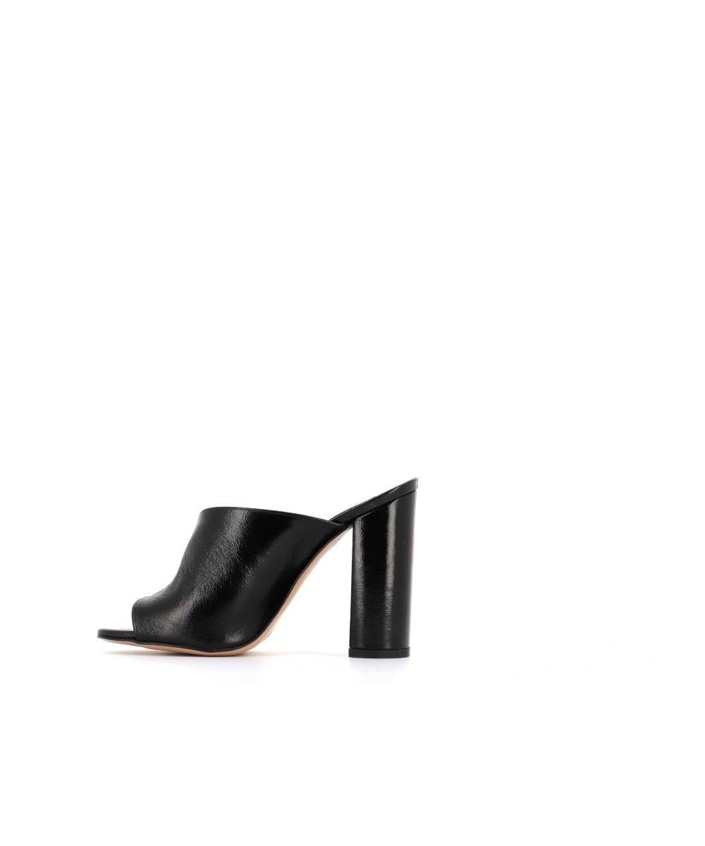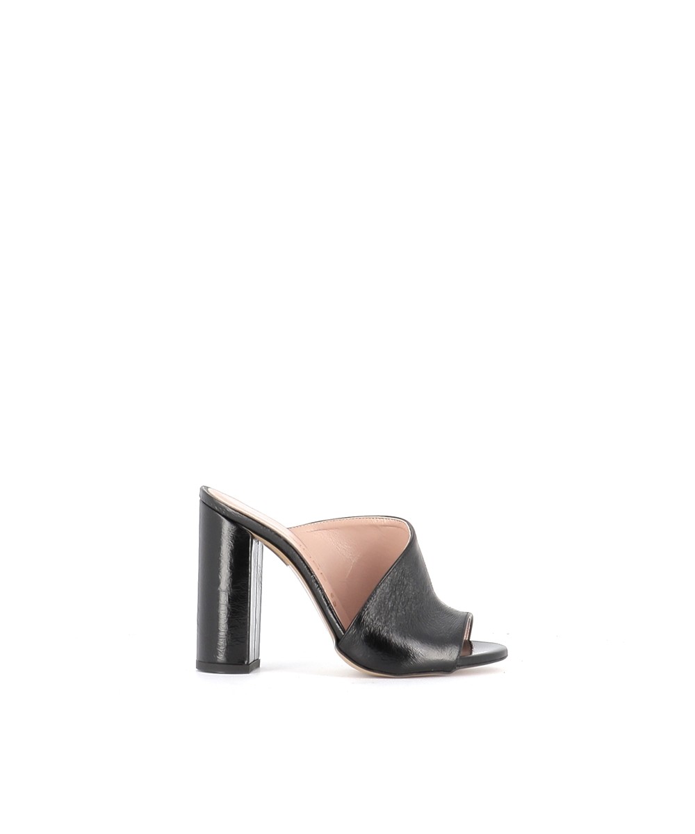 Voici la tendance sûre de cette saison, tout en séduction et tentation signée OSMOSE Shoes paris: la Mule laminé noir à talon carré, se démocratise.
