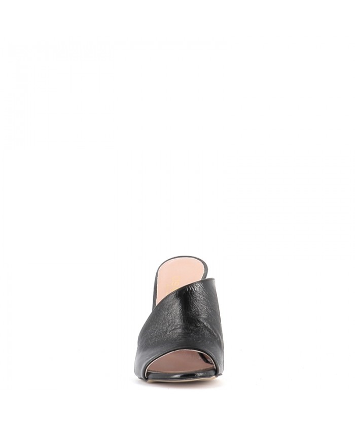 Les mules Elisa à se caractérisent par leurs lignes asymétriques et dégagent une élégance remarquable, signées Osmose Paris. Confectionnées en Italie en cuir végan métallisé noir, ces mules à bouts ouverts sont dotées de larges brides à découpe asymétriques et reposent sur un confortable talon carré bloc de 10,5 cm.