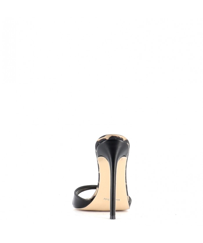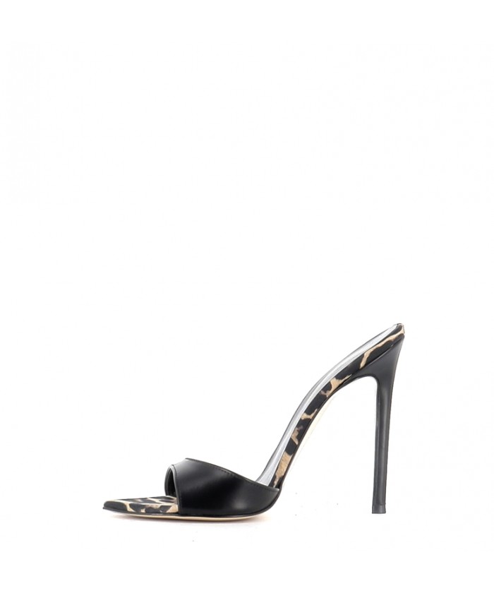 La sandale BEATRICE Noir – Semelle Léopard de OSMOSE PARIS allie minimalisme et détail signature.