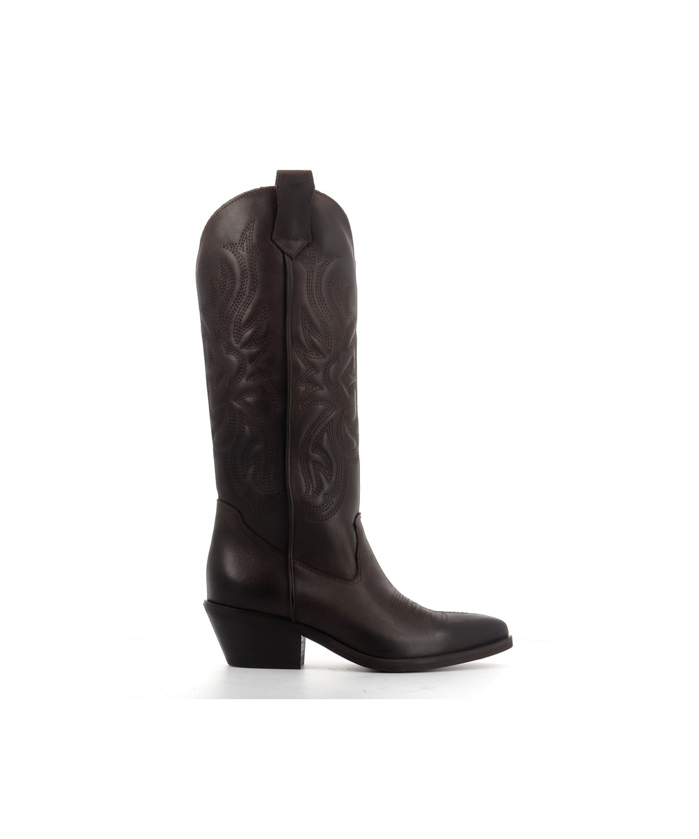 NEVADA est la botte western emblématique signée OSMOSE PARIS, entièrement fabriquée en Italie. Confectionnée dans un cuir brun profond, elle revisite les codes du Far West avec élégance : tige haute brodée, bout légèrement pointu et talon biseauté typique du style cowgirl. Ses tirants latéraux permettent un enfilage facile, et sa silhouette élancée sublime toutes les tenues. Robuste, confortable et racée, la botte NEVADA incarne un esprit libre et affirmé. Un must-have du vestiaire féminin, pensé pour celles qui osent affirmer leur style avec caractère.